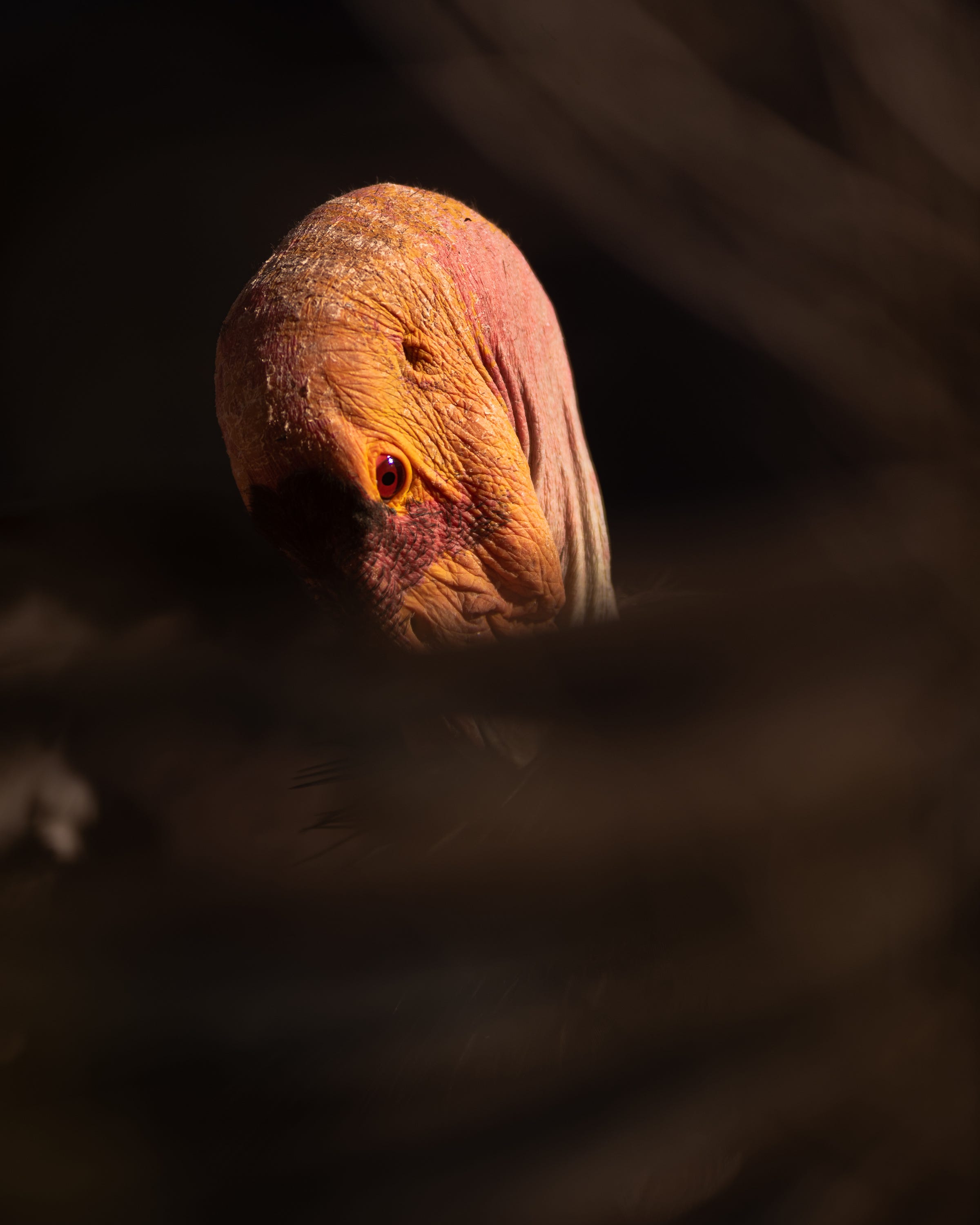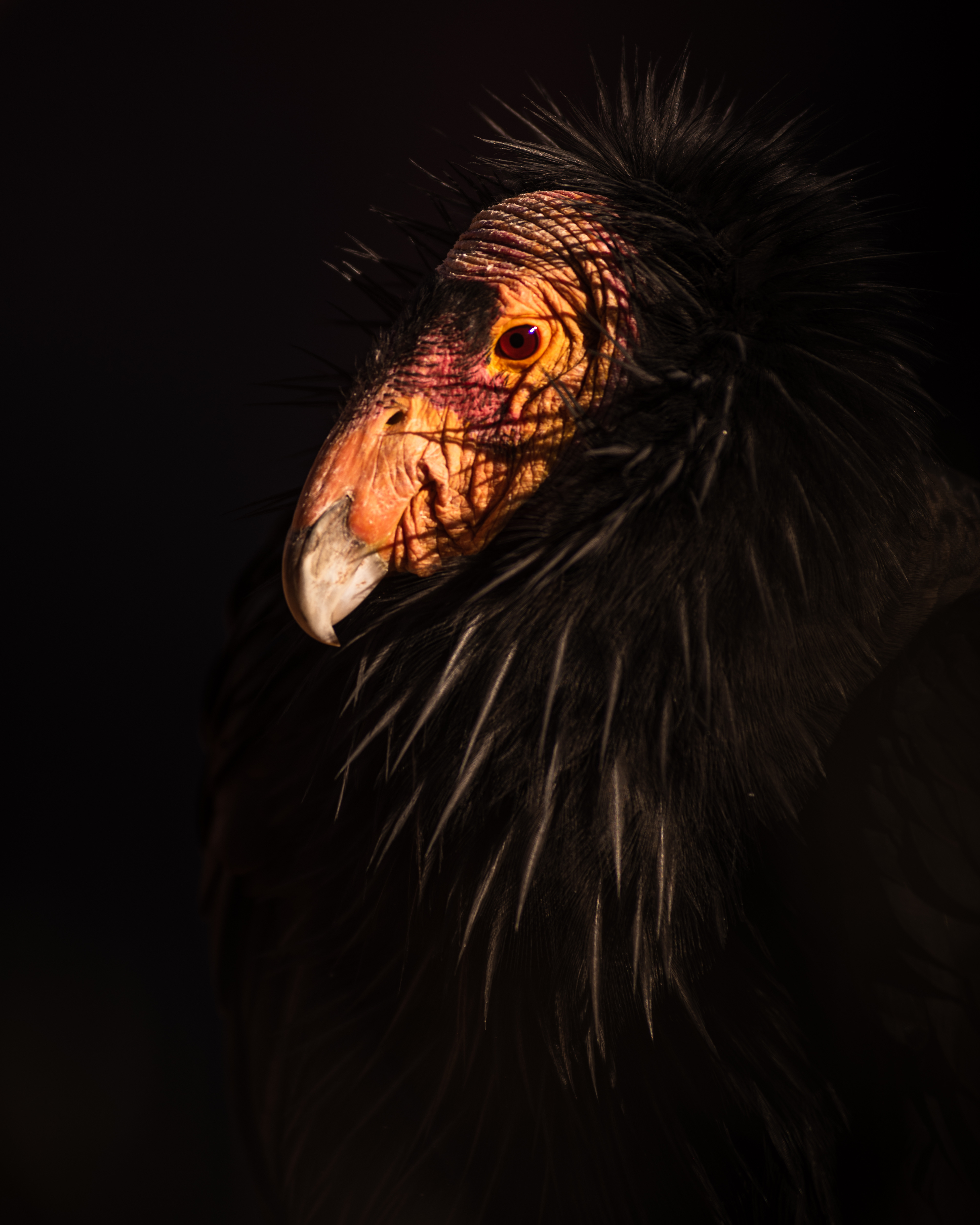 The highlight of the hike for me was seeing a massive condor on the way down. Apparently they’re in the area frequently but this one was sitting a little ways off the trail. I shot probably 200 photos and ended up with 10-15 good ones of this condor alone. The shaded canyon behind allowed for a very dramatic contrast, and with the right lens I was able to get extreme closeups. Even though I had so many photos, here are the two I like the most. The first is a very simple closeup where I tried to really show off the contrast between the light on the condor and the shade behind. The second is a photo where I was able to shoot through the condor’s outstretched wing feathers to frame it up as if it were a vampire. I really like these because it almost feels like it was shot in a studio and the condor was specifically modeling for me. It’s rare with wildlife to get such easy photos.
