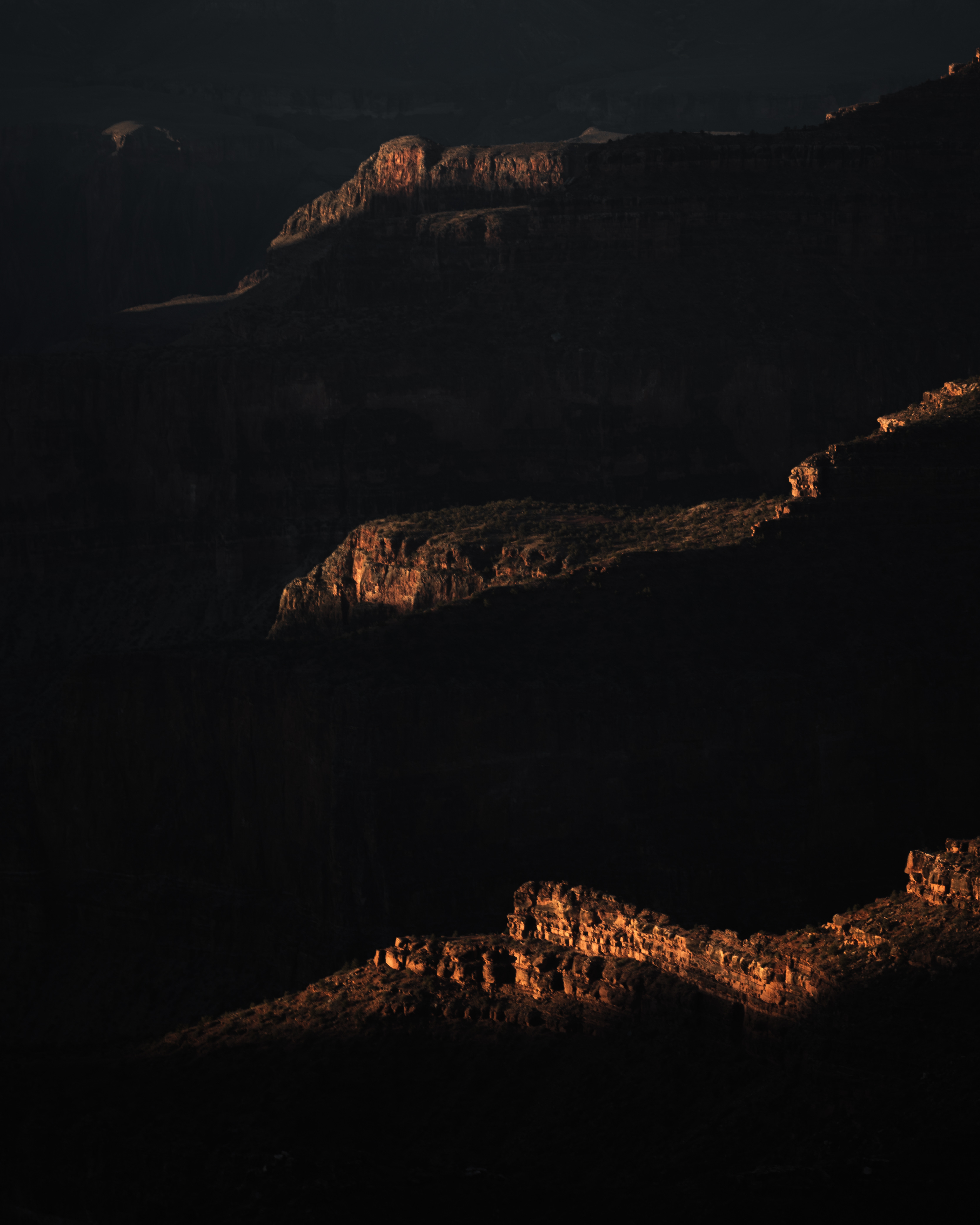 While the sun was rising I had primarily focused my camera on shadows. The way the shadows morphed as the sun slowly rose was constantly transforming the canyon. The photo below shows a line of ridges all catching the first glimpses of light. It’s a very minimalist and dark shot but the contrast works well. The canyon was filled with little pockets of small compositions like this. Light is key in the canyon, and I was told years prior that once the sun is high in the sky it is almost impossible to shoot here. The photo below that gives a look into what these ridges looked like without the contrasting light.