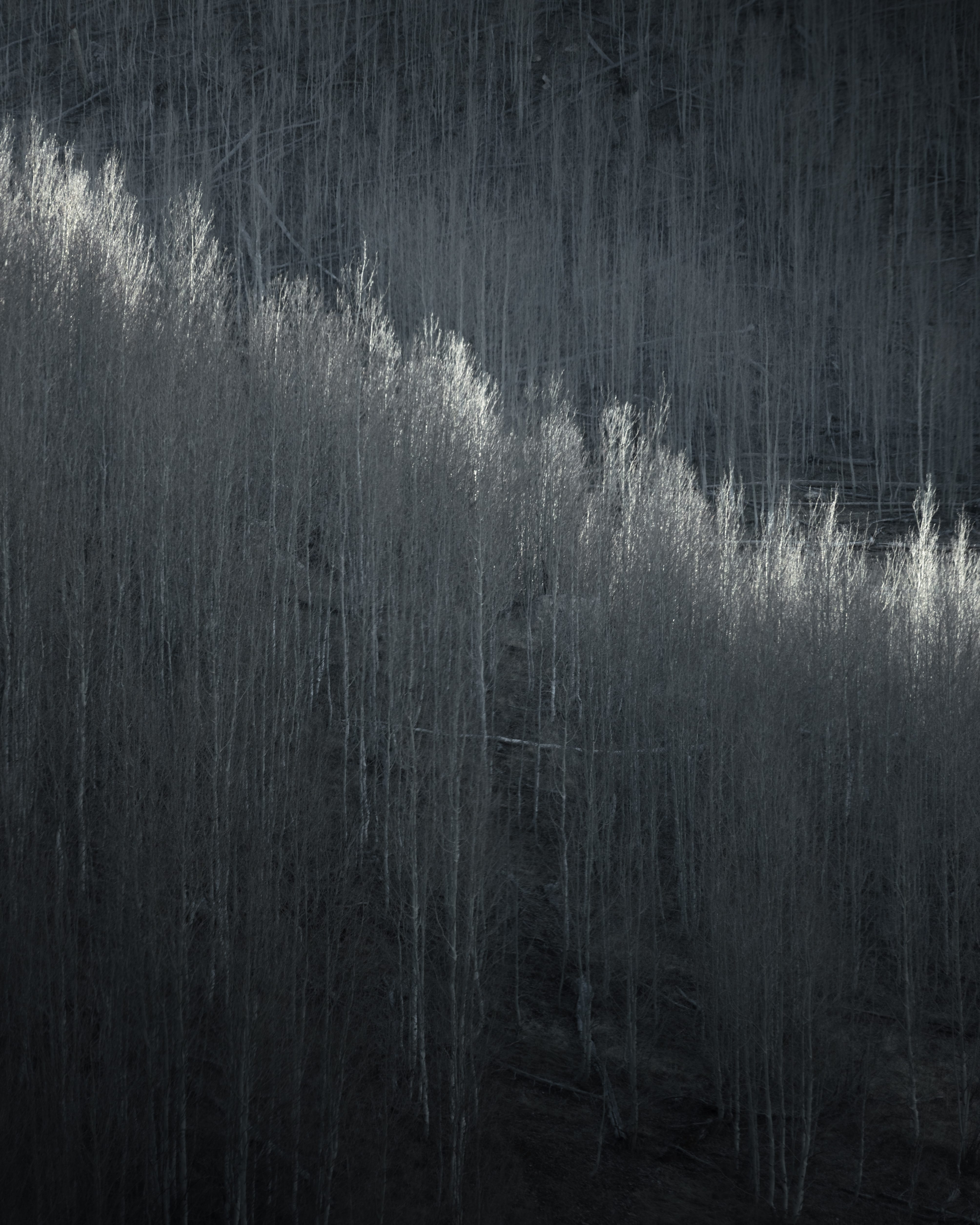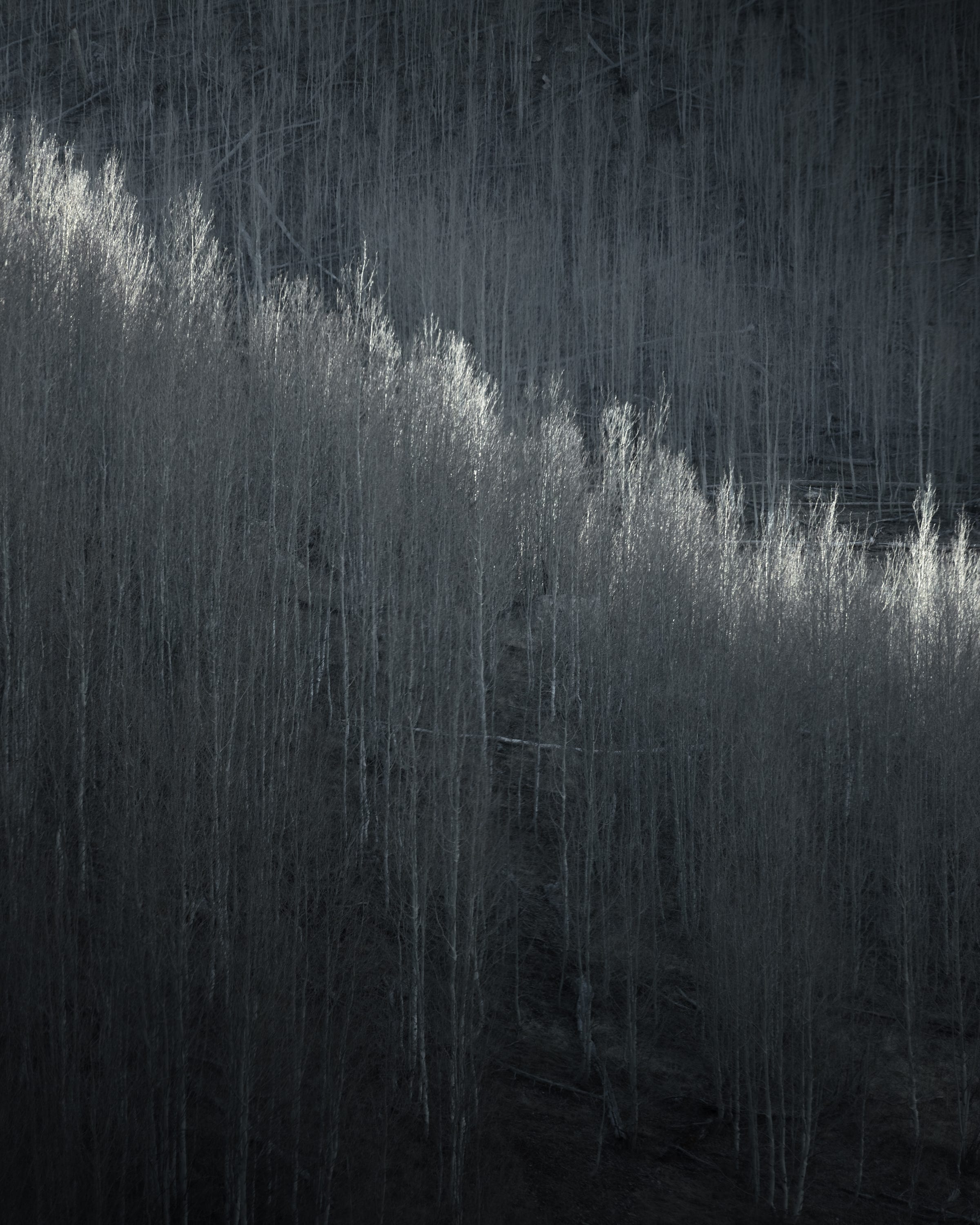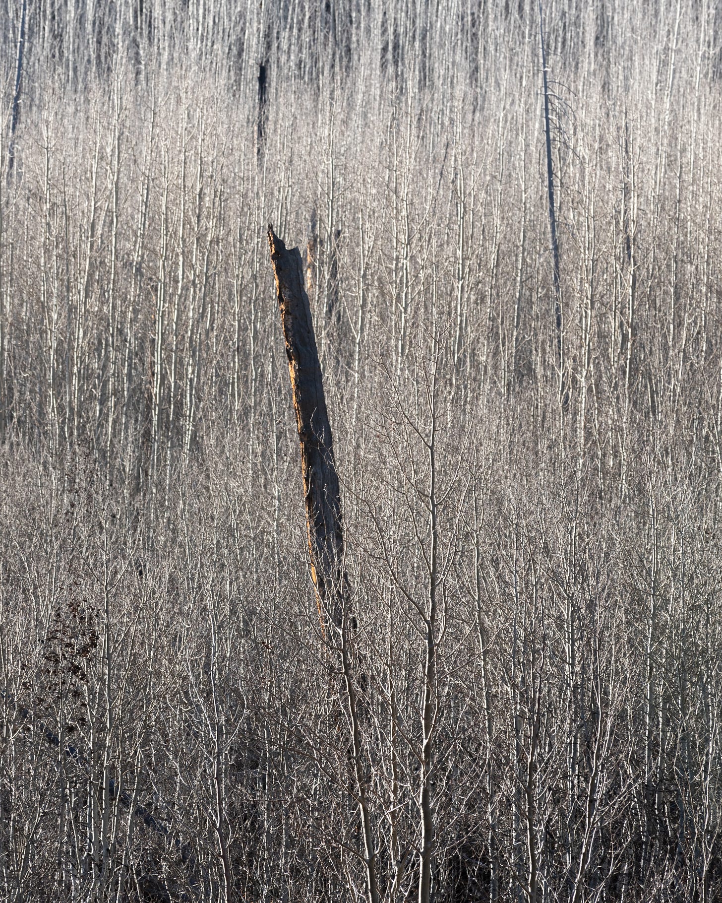 After this initial viewpoint I planned on heading back up to Page but I decided to drive west a little bit and check out one final viewpoint on the way out. This was an interesting drive that resulted in seeing (what I assume was) a large aspen grove. The white bark really caught my eye and I was able to use the light to my advantage here as well. This helps add a bit of interest to the photo since otherwise it would just be a mess of white aspen with no clear direction. I also found a contrasting tree in another spot to mix it up for a second photo.