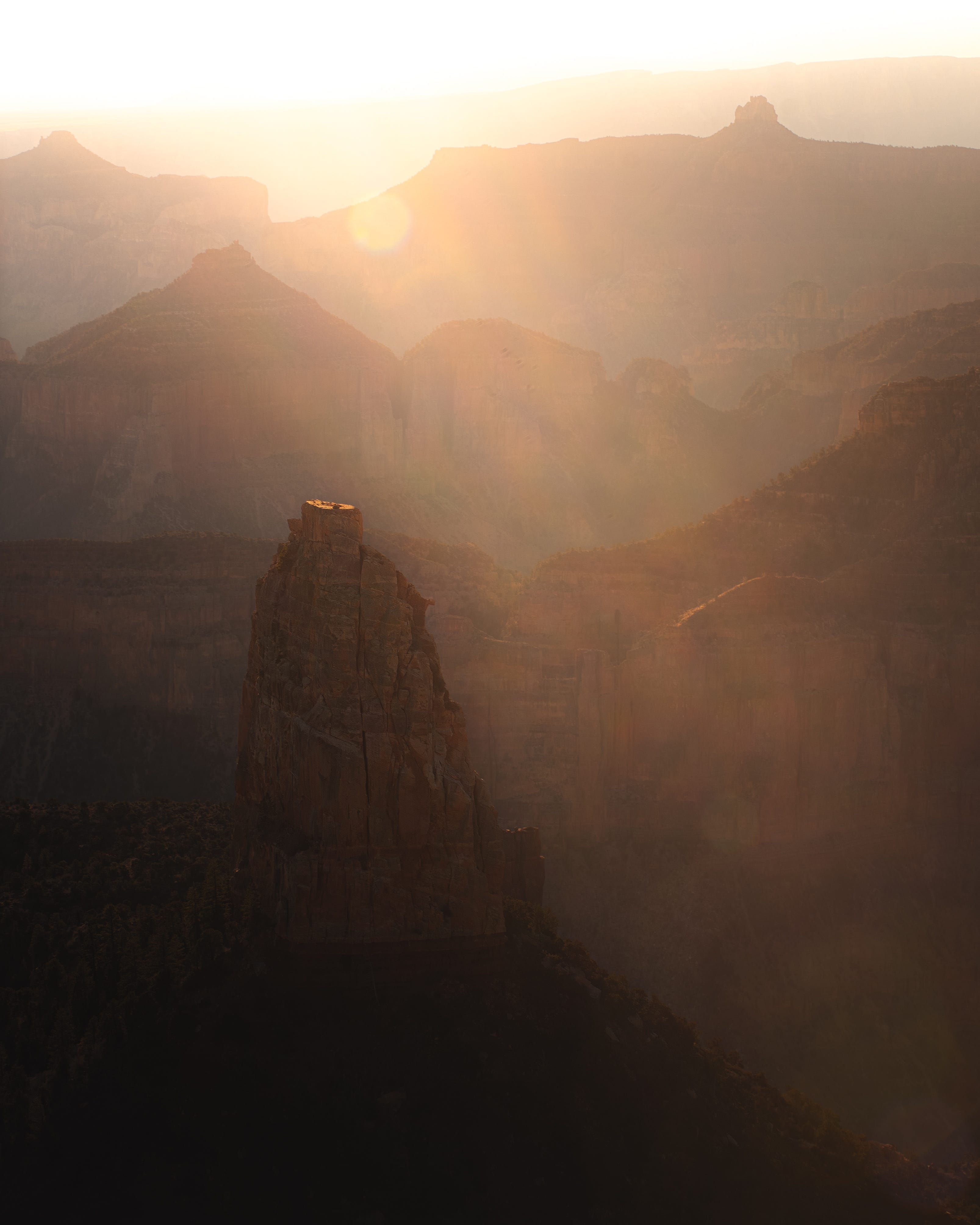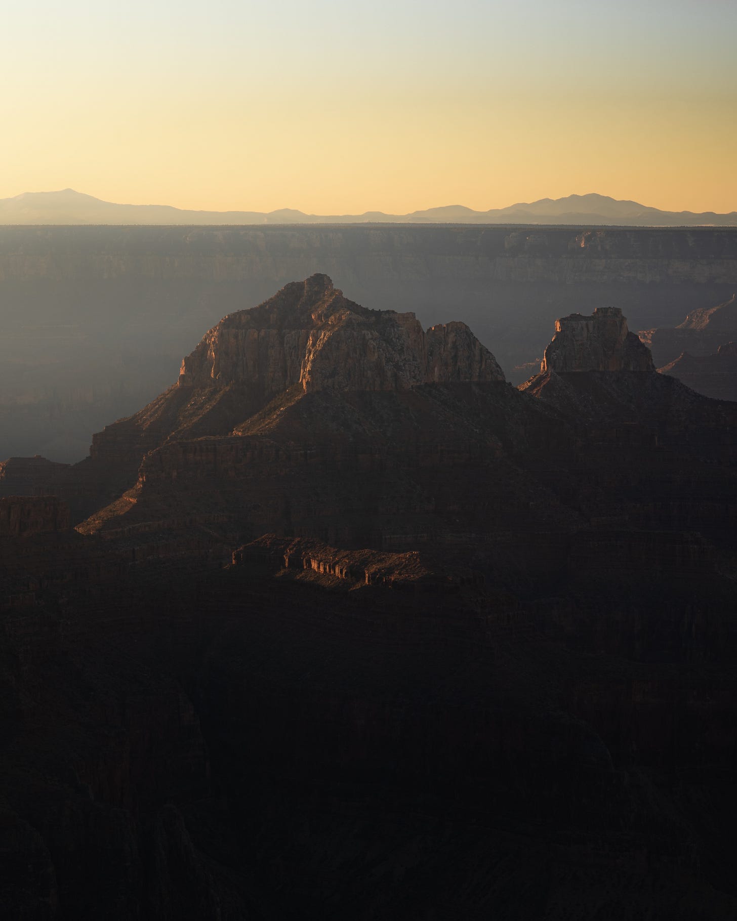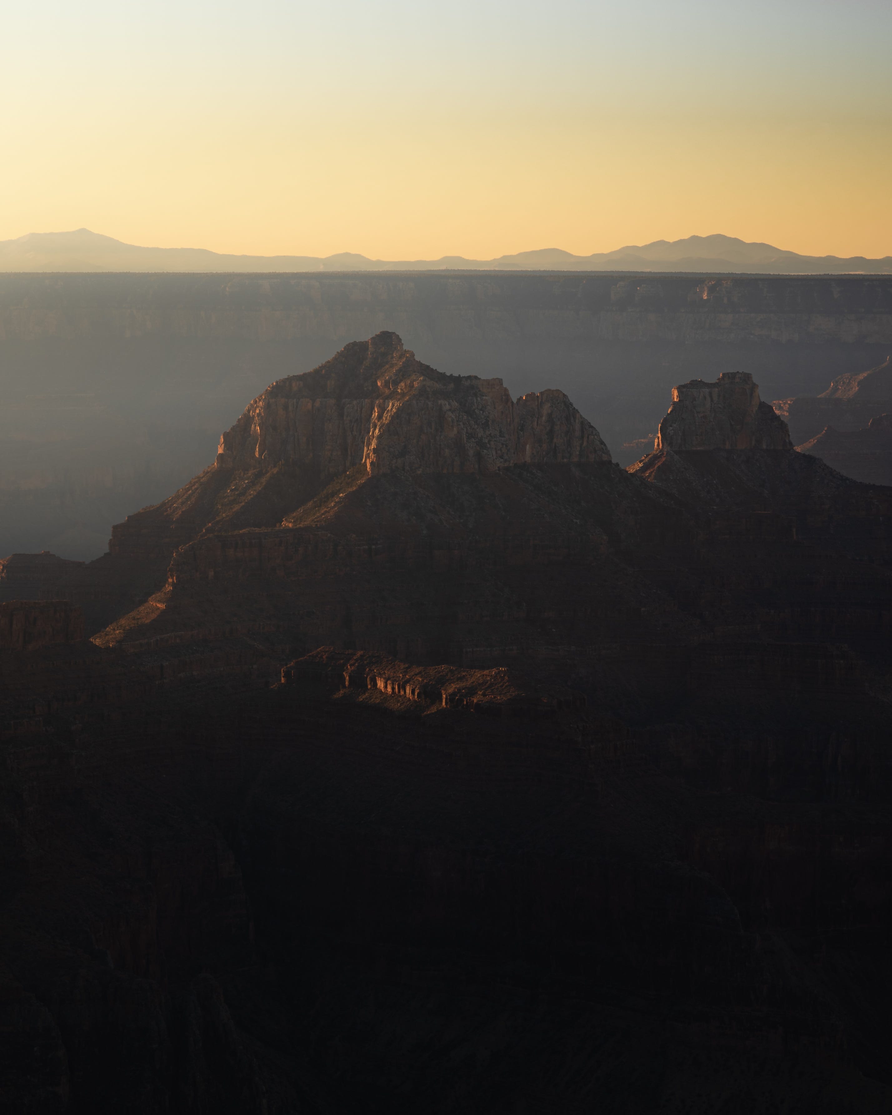 Sunrise here was a beautiful experience. The north rim has far less visitors so I was alone the majority of the time. I watched the sky slowly light up as the shade gradually lifted from the canyon below me. As time passed, the canyon was revealed to me, and I was becoming more and more amazed at what was unfolding in front of me. The height of the walls were slowly revealed and eventually I could see the bottom, which had taken longer than I had anticipated.