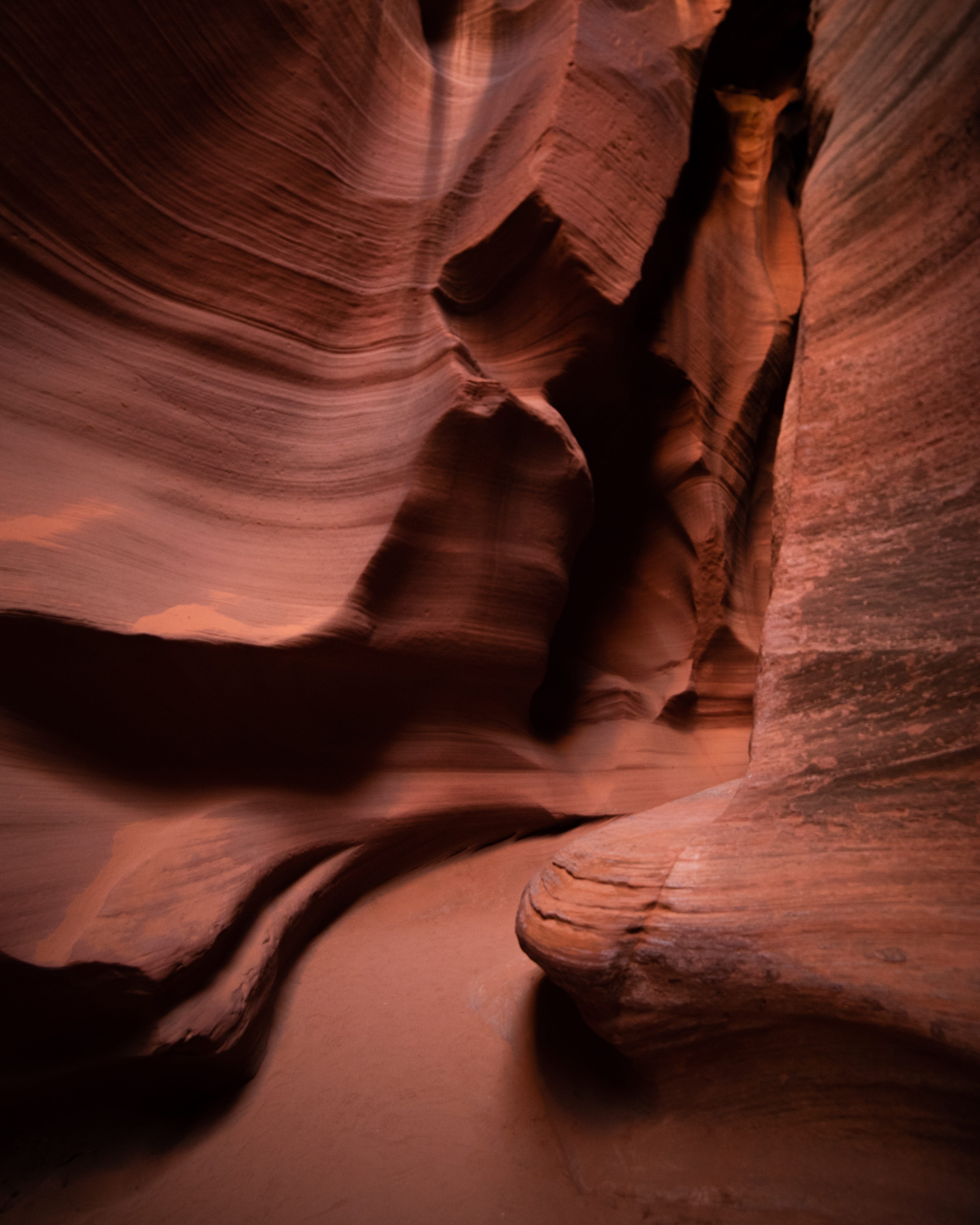 The first actual slot canyon we went to was darker than expected and I was initially surprised. I had seen so many photos of these canyons and they were always bright orange with obvious sweeping lines but this canyon was a little less polished than those. I still shot the photo below and figured this would be as good as it would get, and I knew I could make it work.