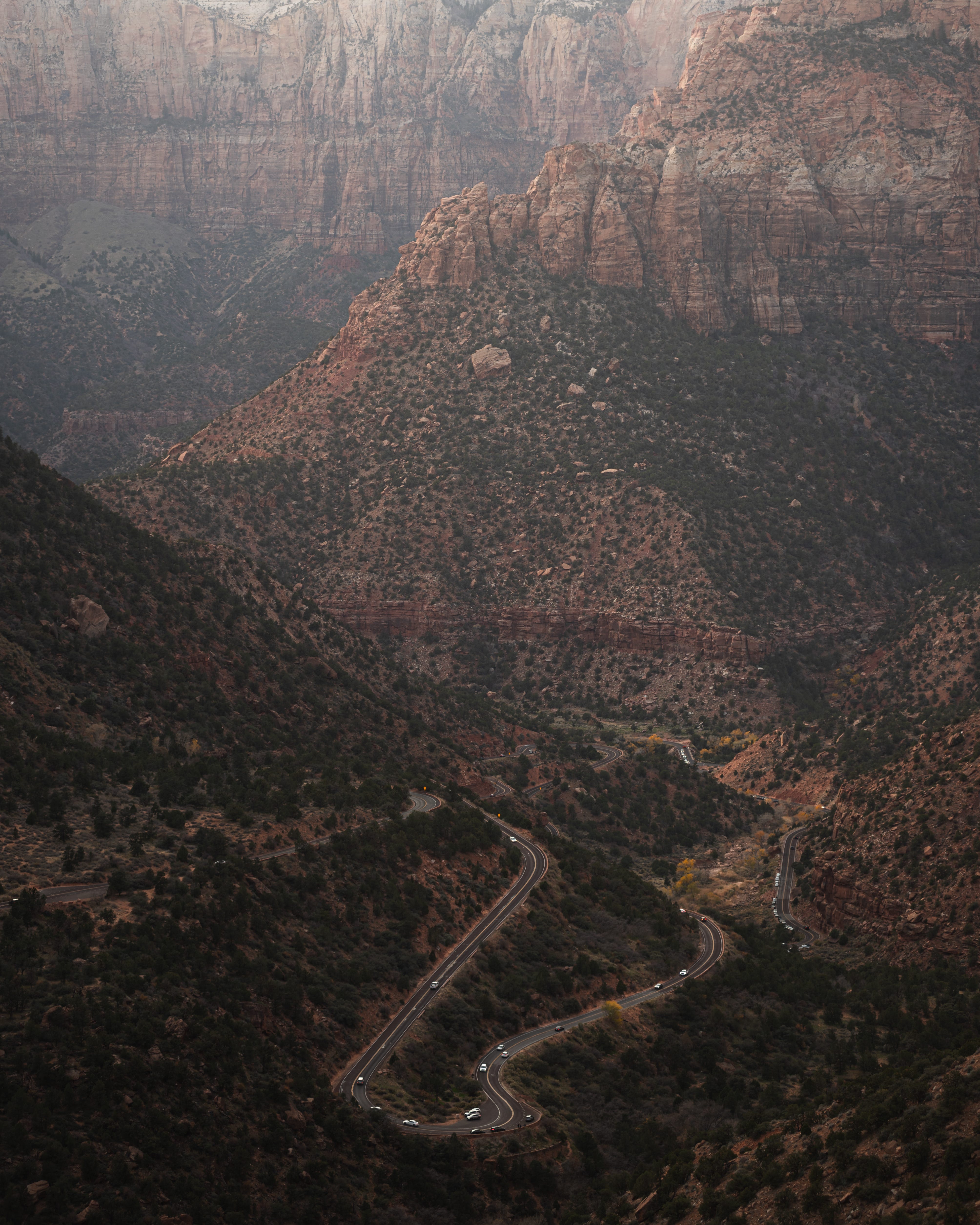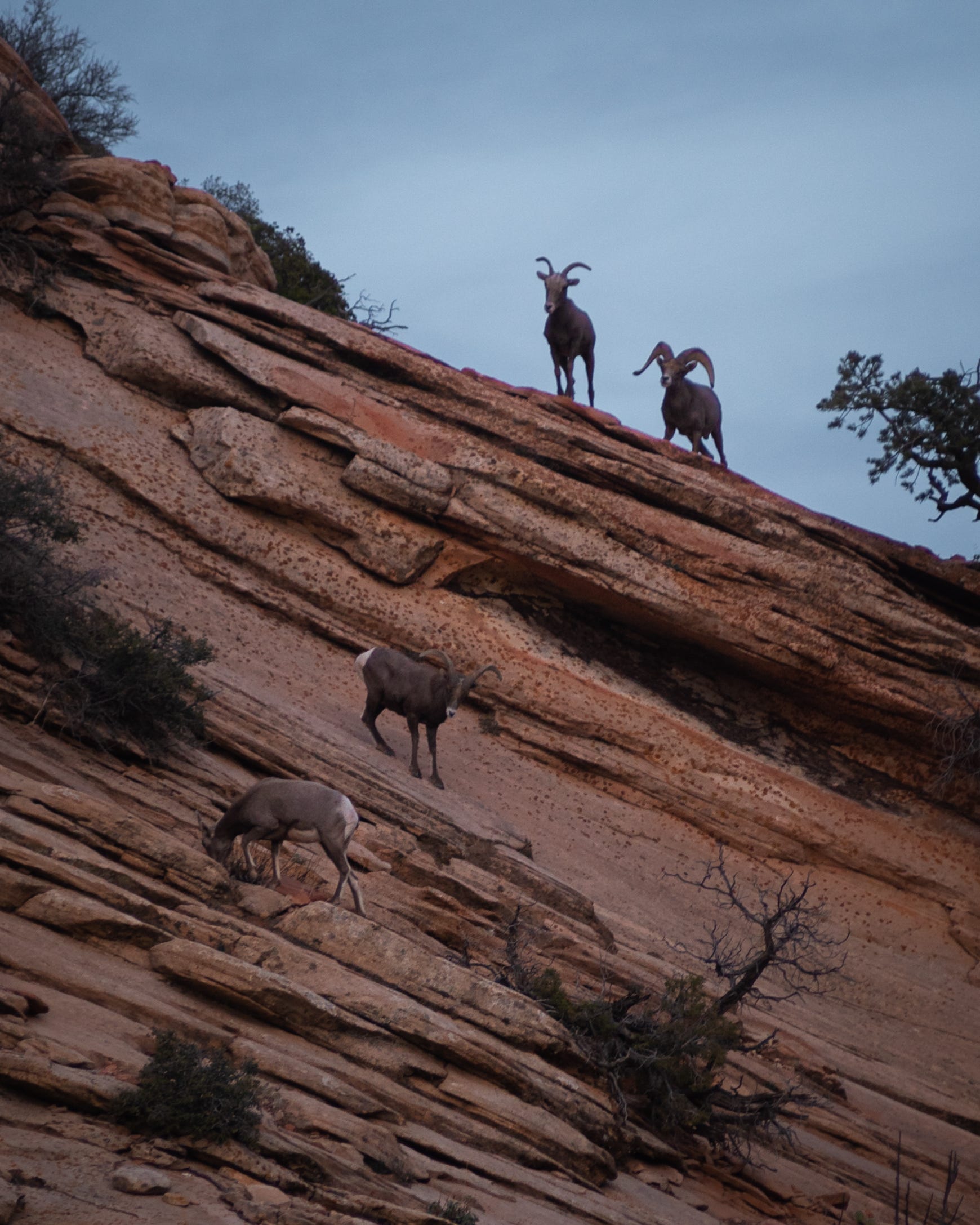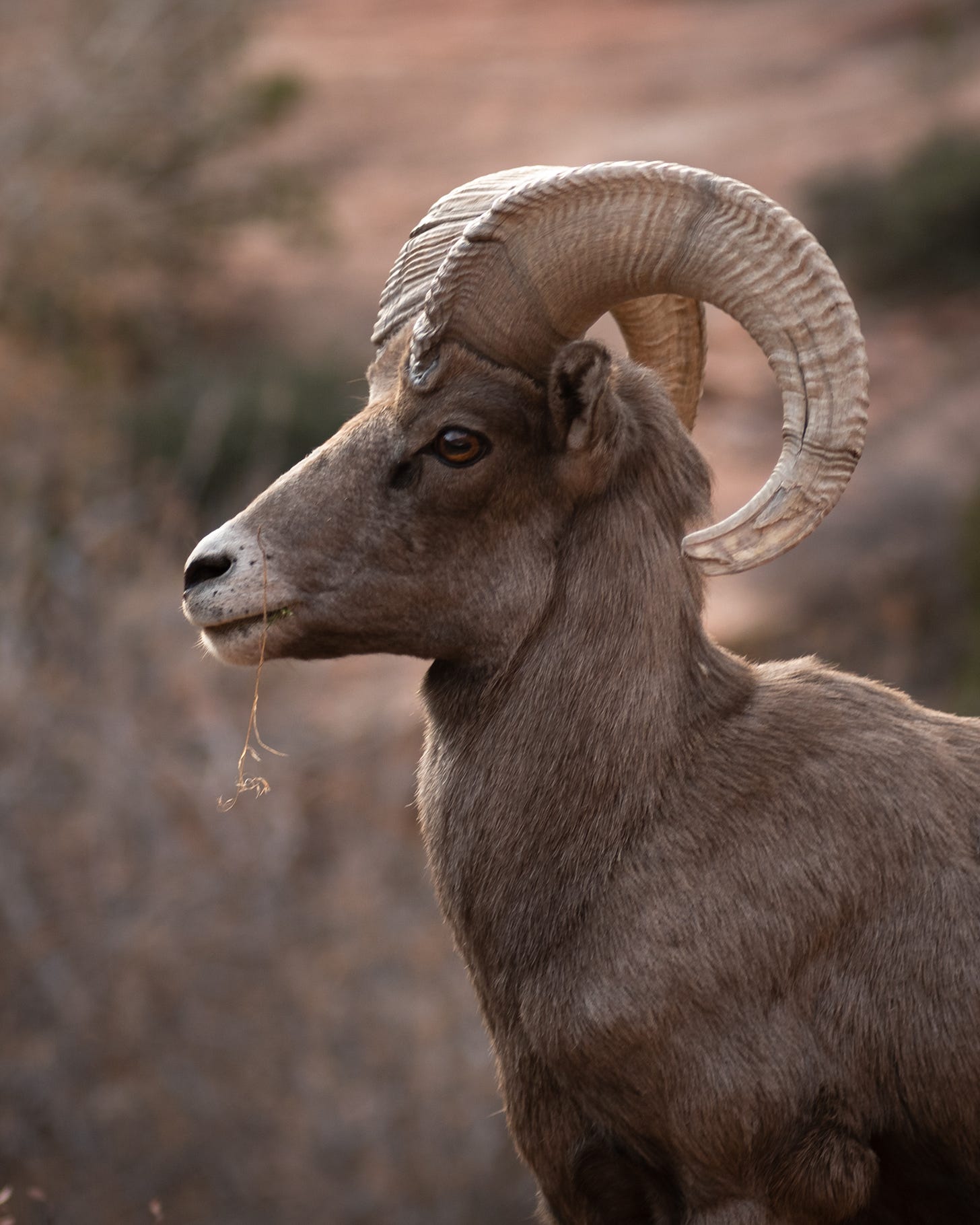 I didn’t know much of Zion prior to this trip beyond Angel’s Landing, The Narrows, and a tunnel somewhere. Coming in from the east entrance, you don’t get the grand views right away. It’s a beautiful canyon but you have to make your way into the park before you hit the tunnel. It was in this section that I saw some mountain goats right alongside the road and shot a quick portrait of this guy below. (Some would say too quick as the focus clearly is a little off.)