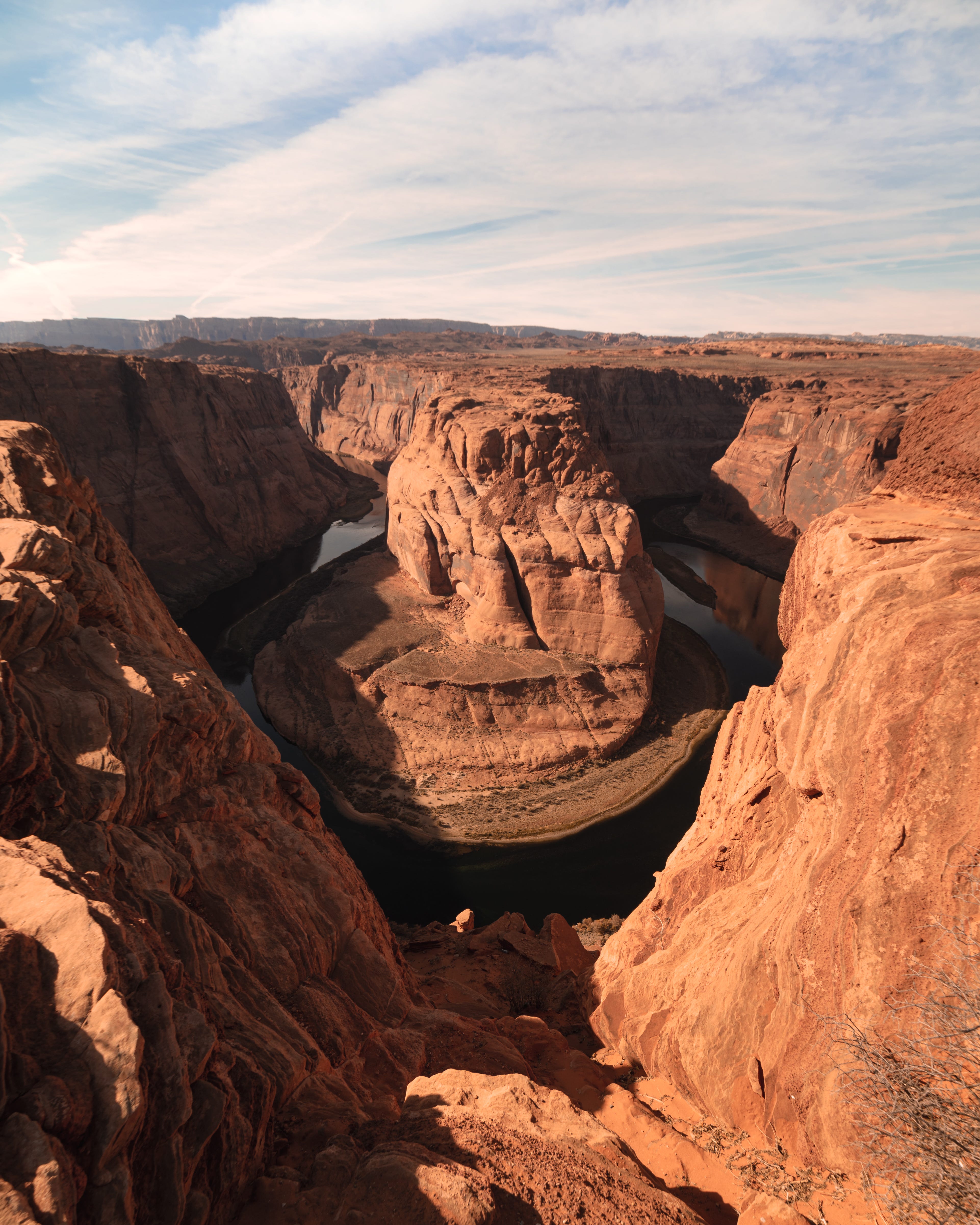 Weaving in and out of the other visitors, less than half paying attention to the stunning view only feet away, I found the below spot where I could frame the bend up. I had already shot the classic photo, up at the beginning of this article, and I wanted something at least marginally different. For a scene like this, as famous as this, I tend to take this approach often. Get the shot everyone gets, then look for the perspectives you haven’t seen. In this instance, there’s only one viewing area and shooting it this way makes the most sense. Managing to find something to set up a frame wasn’t easy given the nature of the scene, but thankfully this worked out.